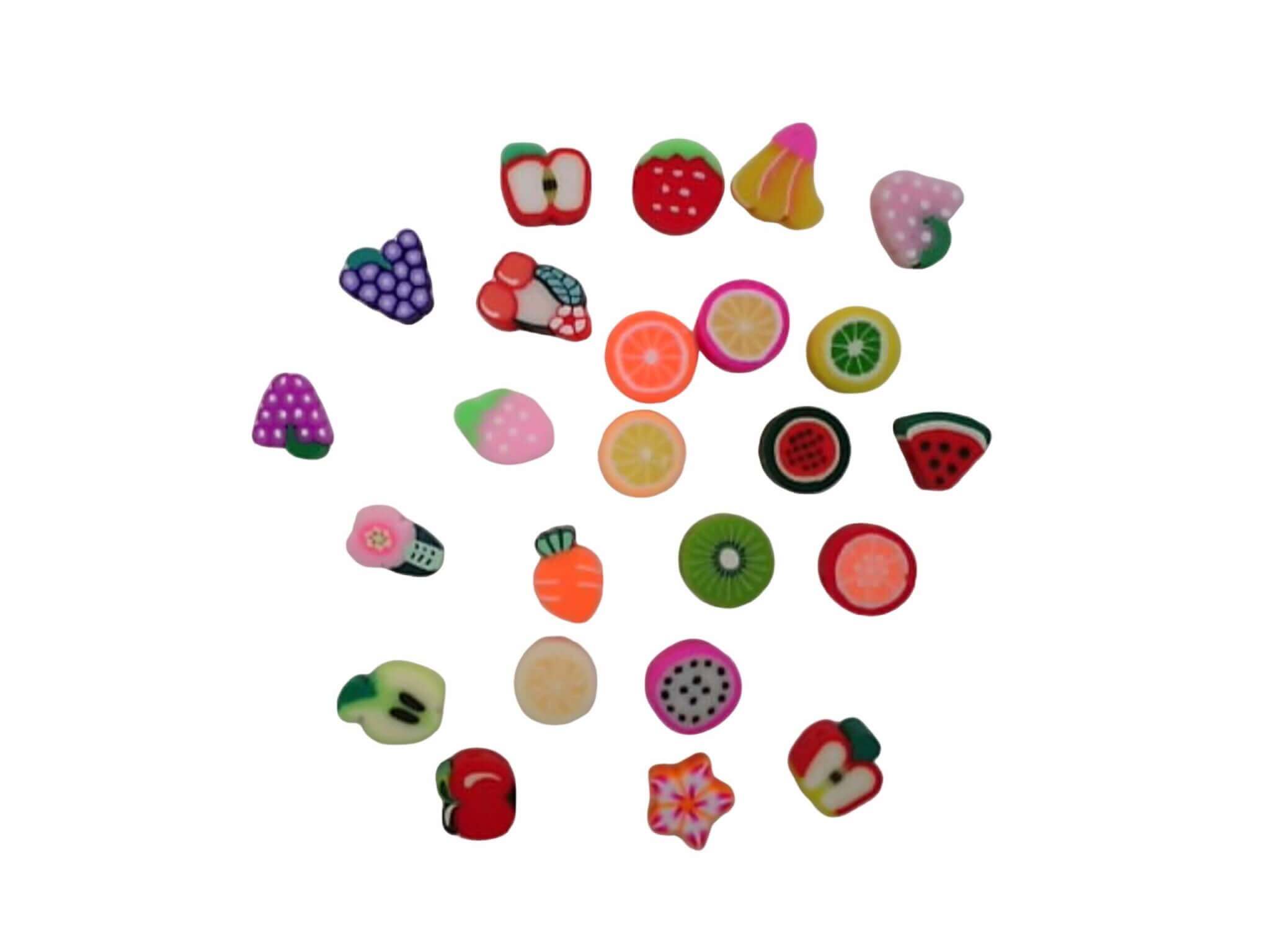 50pc Assorted Fruits Clay Beads 10mm Shapes Polymer