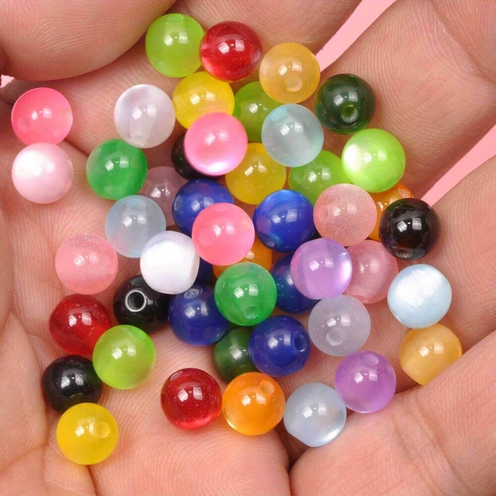 8mm 50pc Mix Color Round Resin Cat Eye Beads