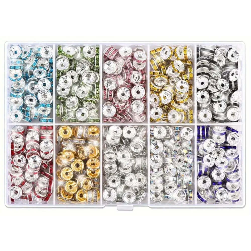600pc 6mm Multi Color Silver Plated Iron Rhinestone Spacer Beads