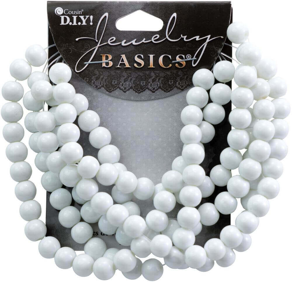 CousinDIY Jewelry Basics Glass Beads 8mm 130/Pkg-White Opaque Round