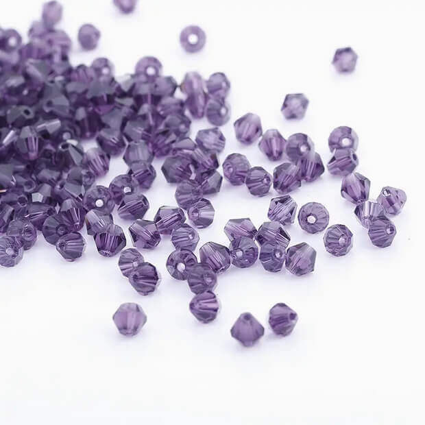 200pc Purple 4mm Bicone Crystal Beads