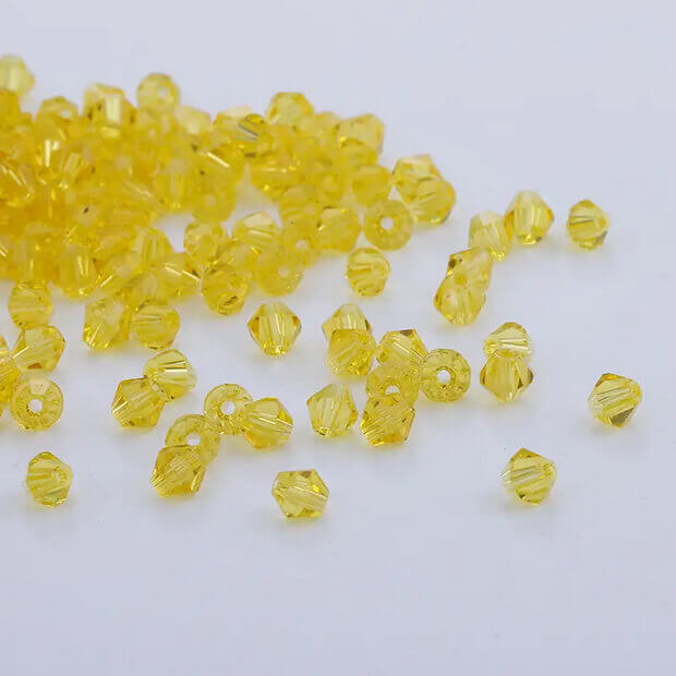 200pc Yellow 4mm Bicone Crystal Beads