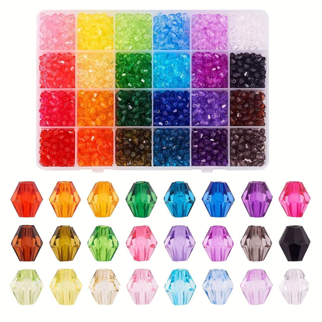 1200pc 24 Color 6mm Bicone Crystal Beads