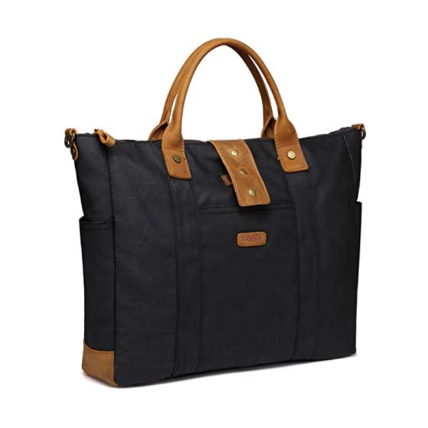 Laptop Tote Bag for Women,VASCHY Water Resistant Vintage Leather Waxed Canvas Laptop Work Bag Teacher Bag for Women Fits…