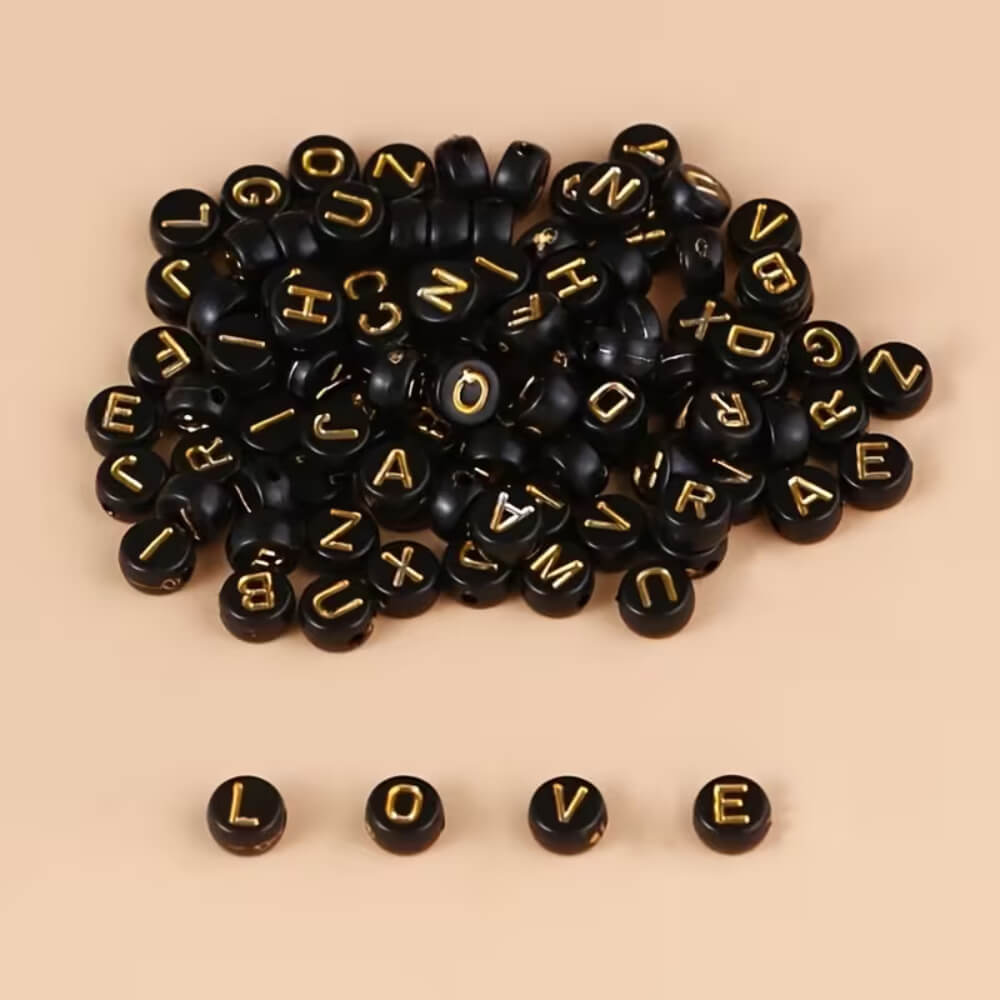 1000pc Black Beads with Gold Letters