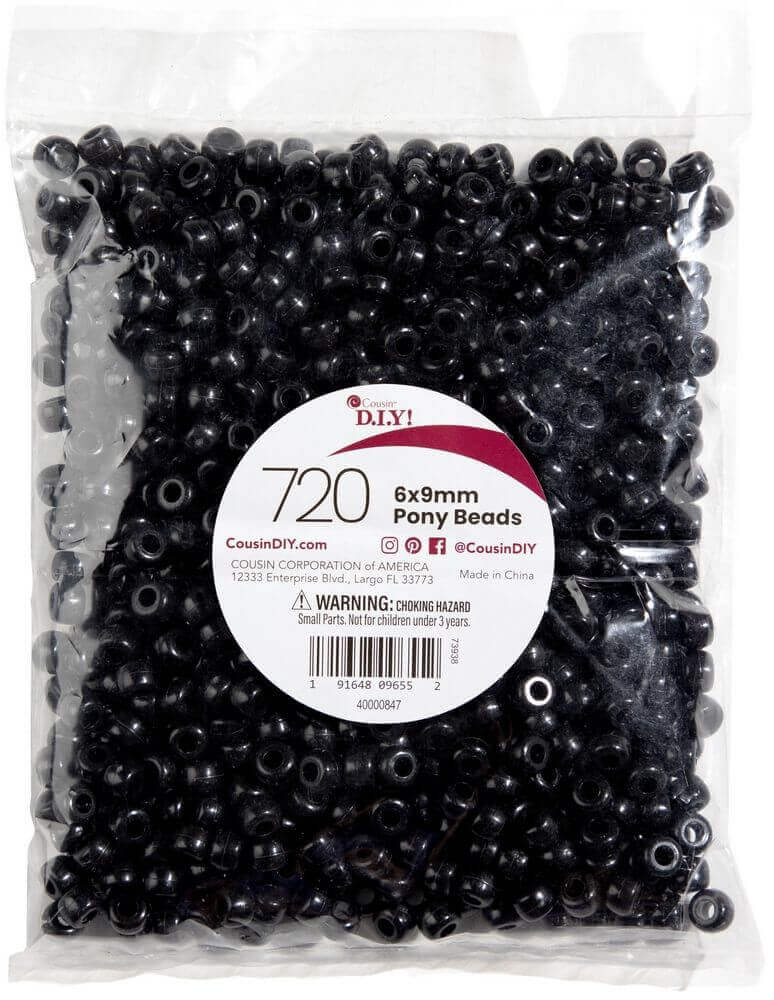 CousinDIY Pony Beads 6mmx9mm 720/Pkg-Opaque Black