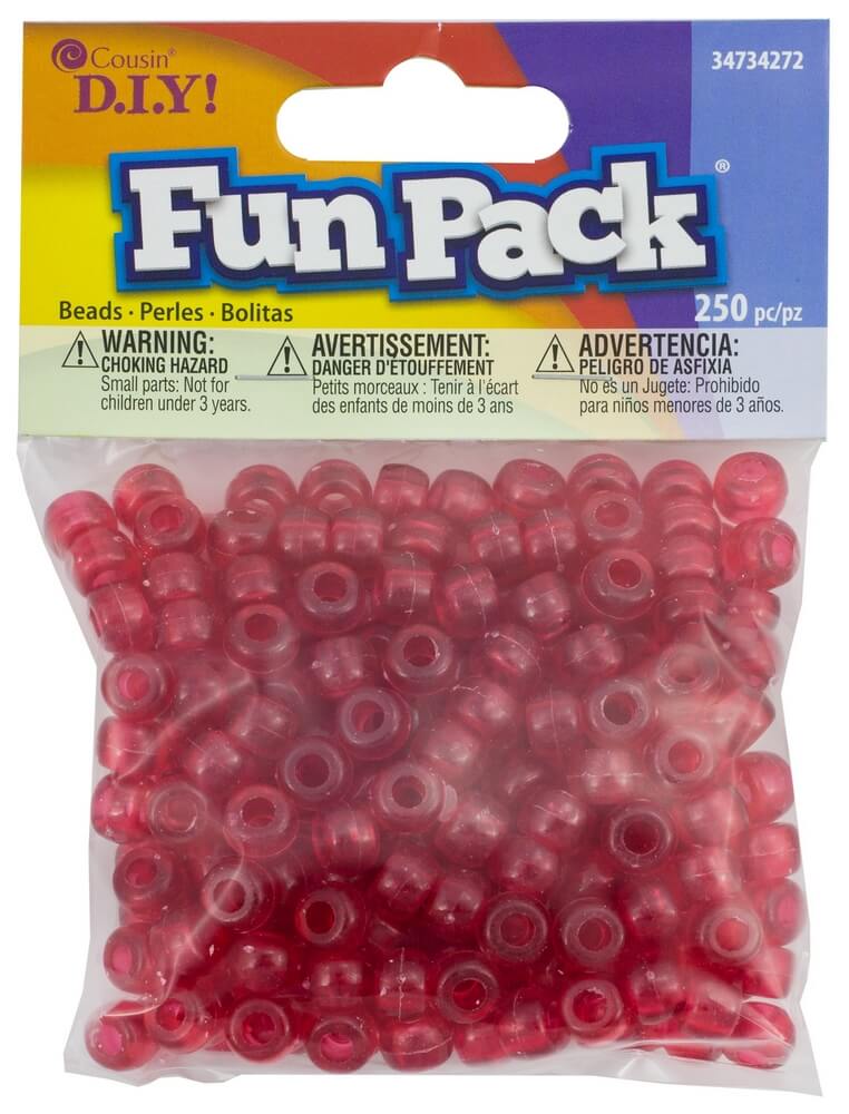 CousinDIY Fun Pack Acrylic Pony Beads 250/Pkg-Clear Red