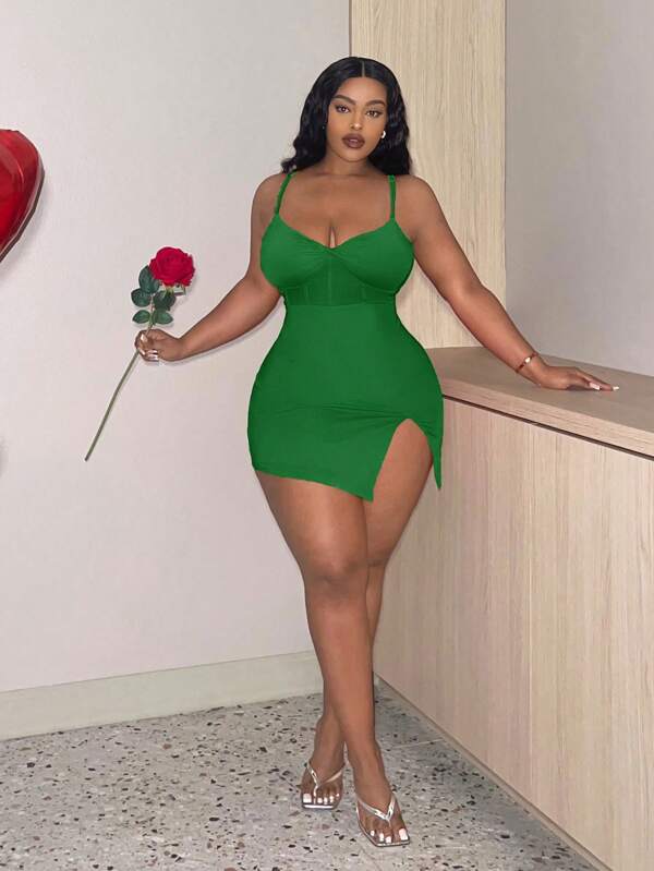 Plus Size Hot Slit Bodycon Cami Mini Dress
