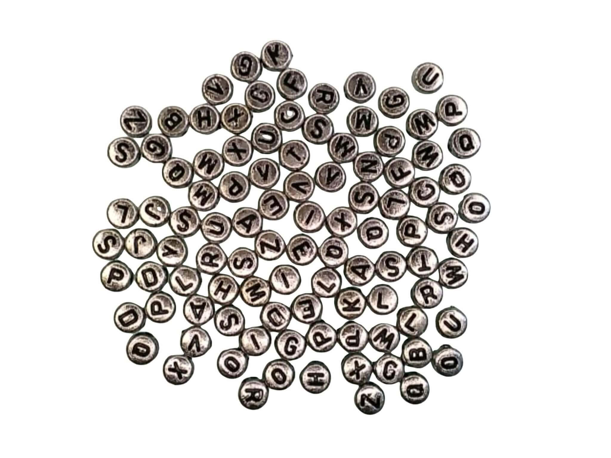 100pc 7mm Silver Mixed Letter Acrylic Beads