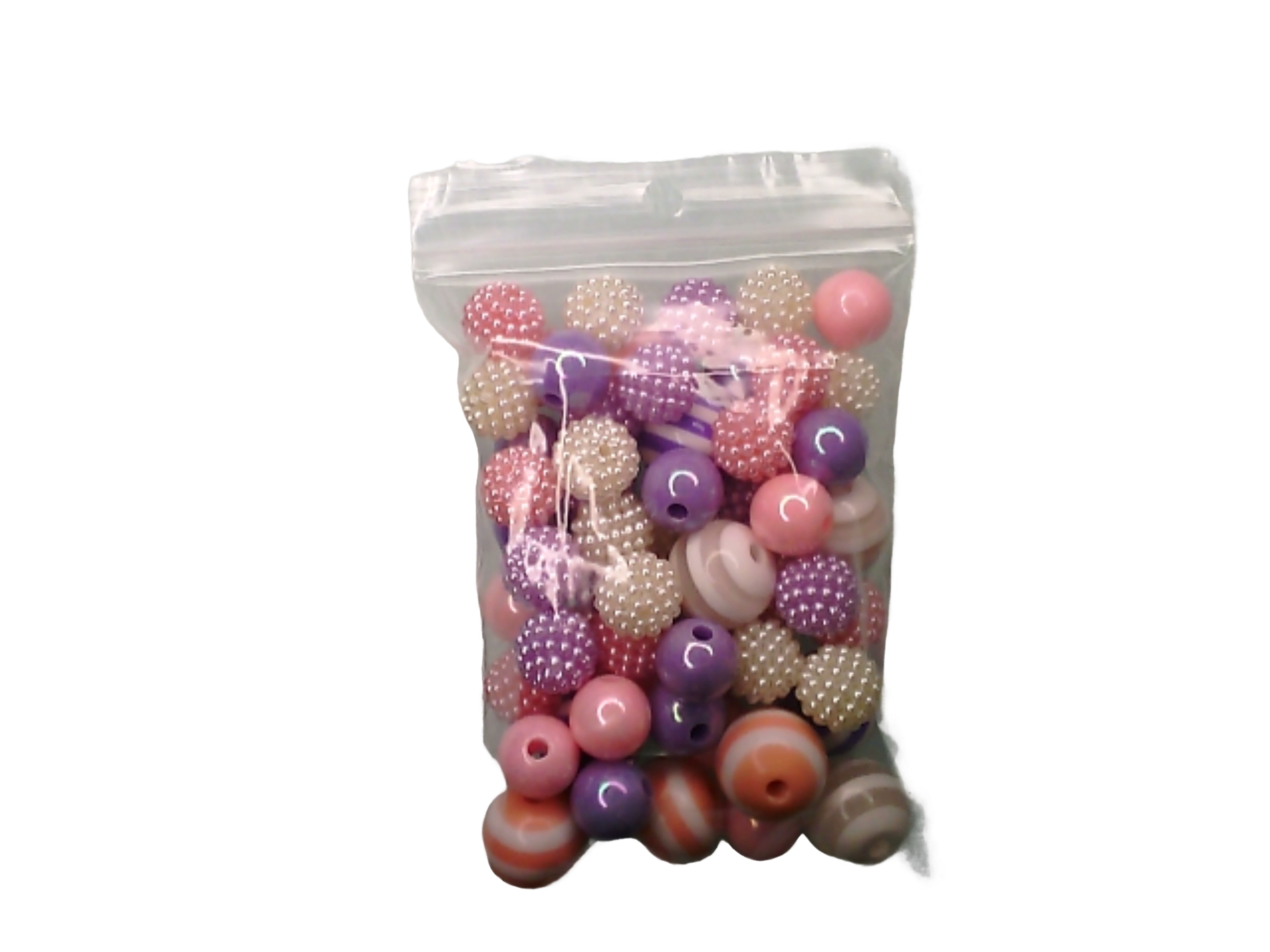 55pc 12-16mm Pink, Purple, White Acrylic Beads