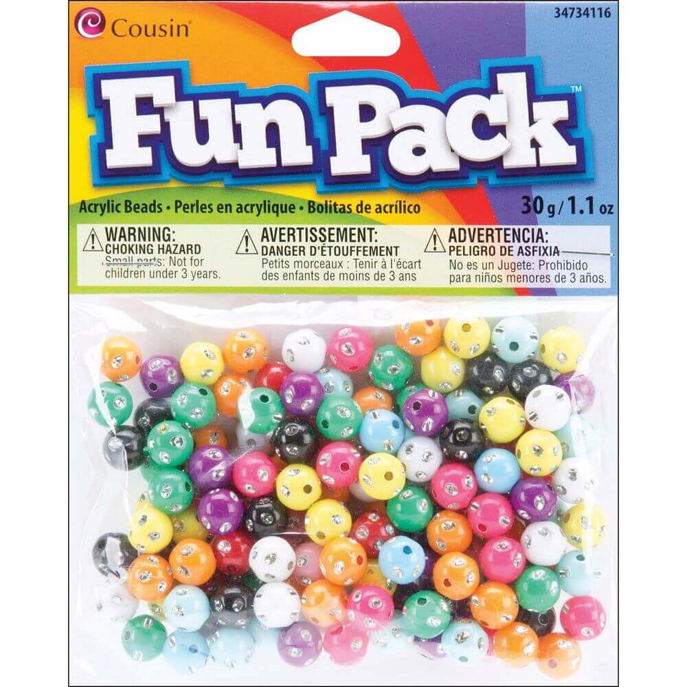 CousinDIY Fun Pack Acrylic Round Beads 1.1oz-Assorted W/Rhinestones