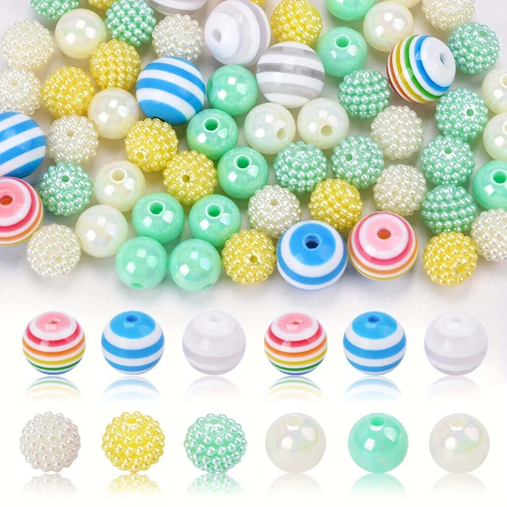 45pc 12-16mm Green, Yellow, White Acrylic Beads