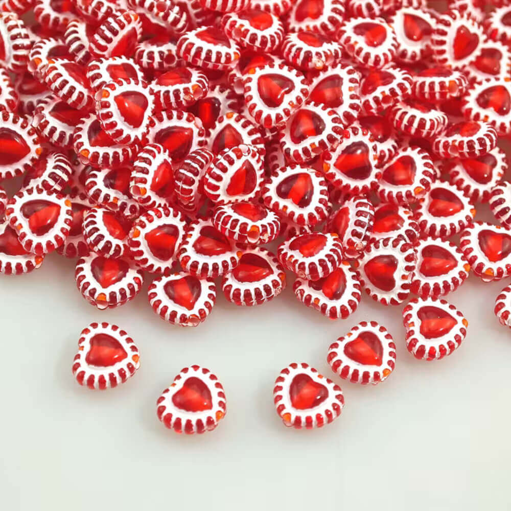 100pc Ruby Red Heart White Outline Acrylic Beads 8mm