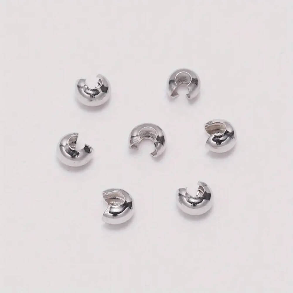 100pc Rhodium 3mm Crimp Bead Covers C Shaped